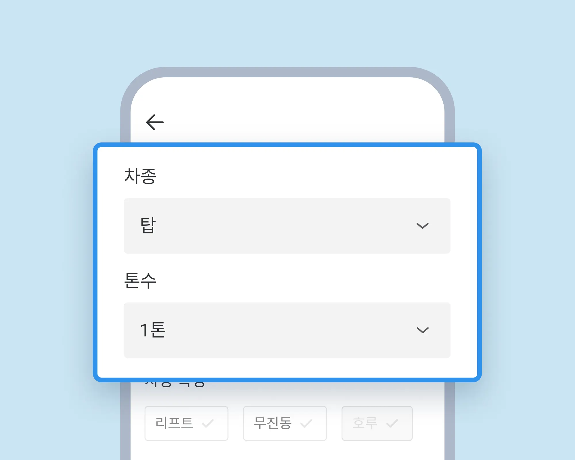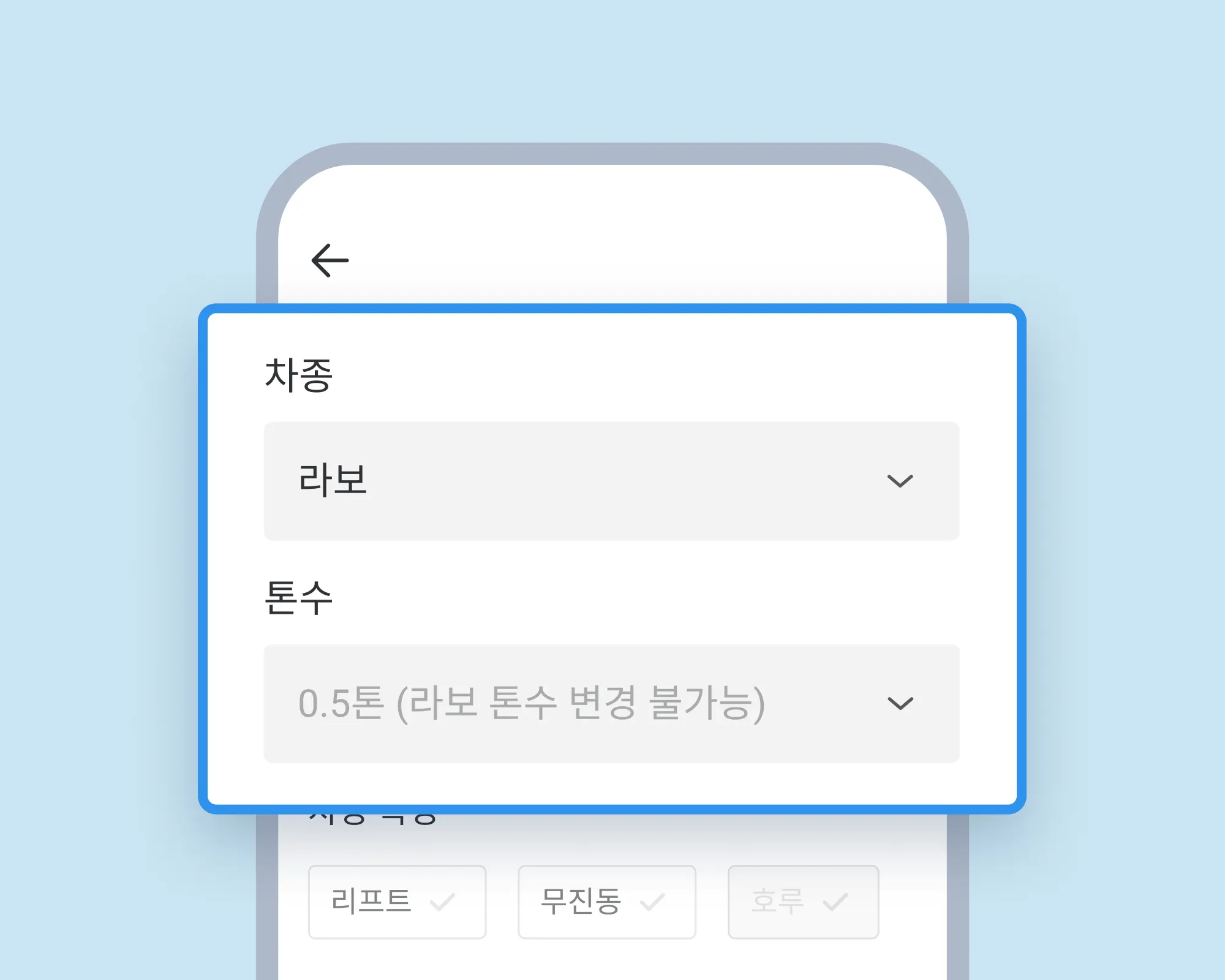 3. 밴형 화물차는 탑차, 1톤으로 등록해 주세요.